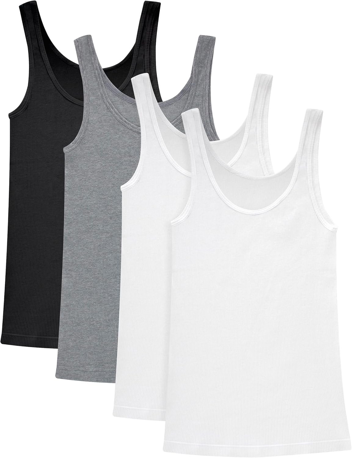 Perfect for layering but cute on its own, this ribbed tank top from the Hanes® Originals collection is a wardrobe essential. This comfy women’s tank is crafted from a soft cotton-rich blend and boasts a just-right fit – not too loose and not too tight. A classic tank top silhouette features a scoop neck and distinctive, textured ribbing. You won’t have to worry about the itch caused by tags, thanks to the smooth, Tagless® interior. And the best part? It’s now available in a convenient pack of four so you can always keep a clean Hanes tank on hand.